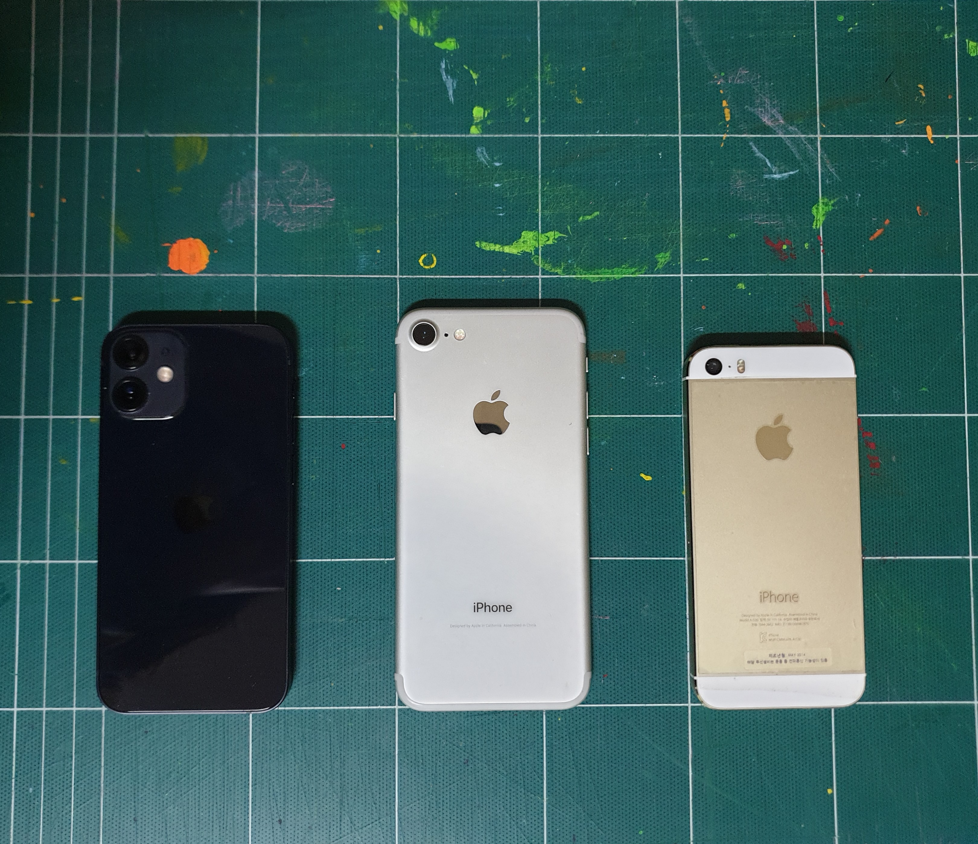 아이폰12미니/아이폰7/아이폰5S 크기 비교