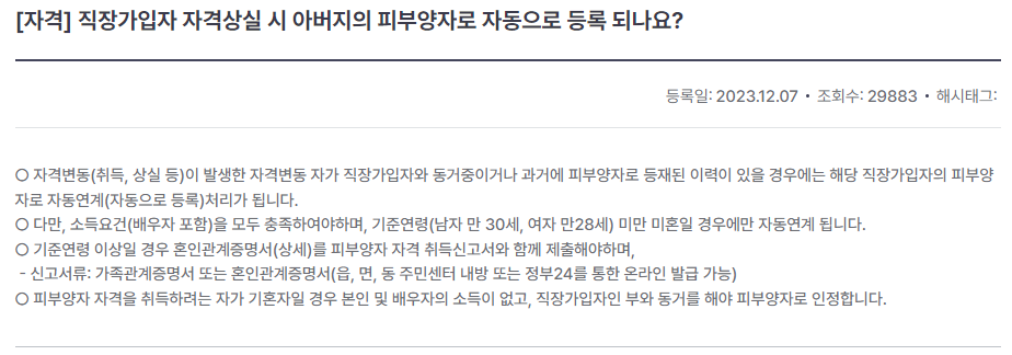 인터넷에서 찾은 얕은 지식을 뽐내며 상담원분께 상황을 설명하고 피부양자 자격 신고하고 싶다고 말씀드리니 몇 가지 개인정보를 물으시고 필요 서류를 문자로 알려주신단다. 참 친절하시다.