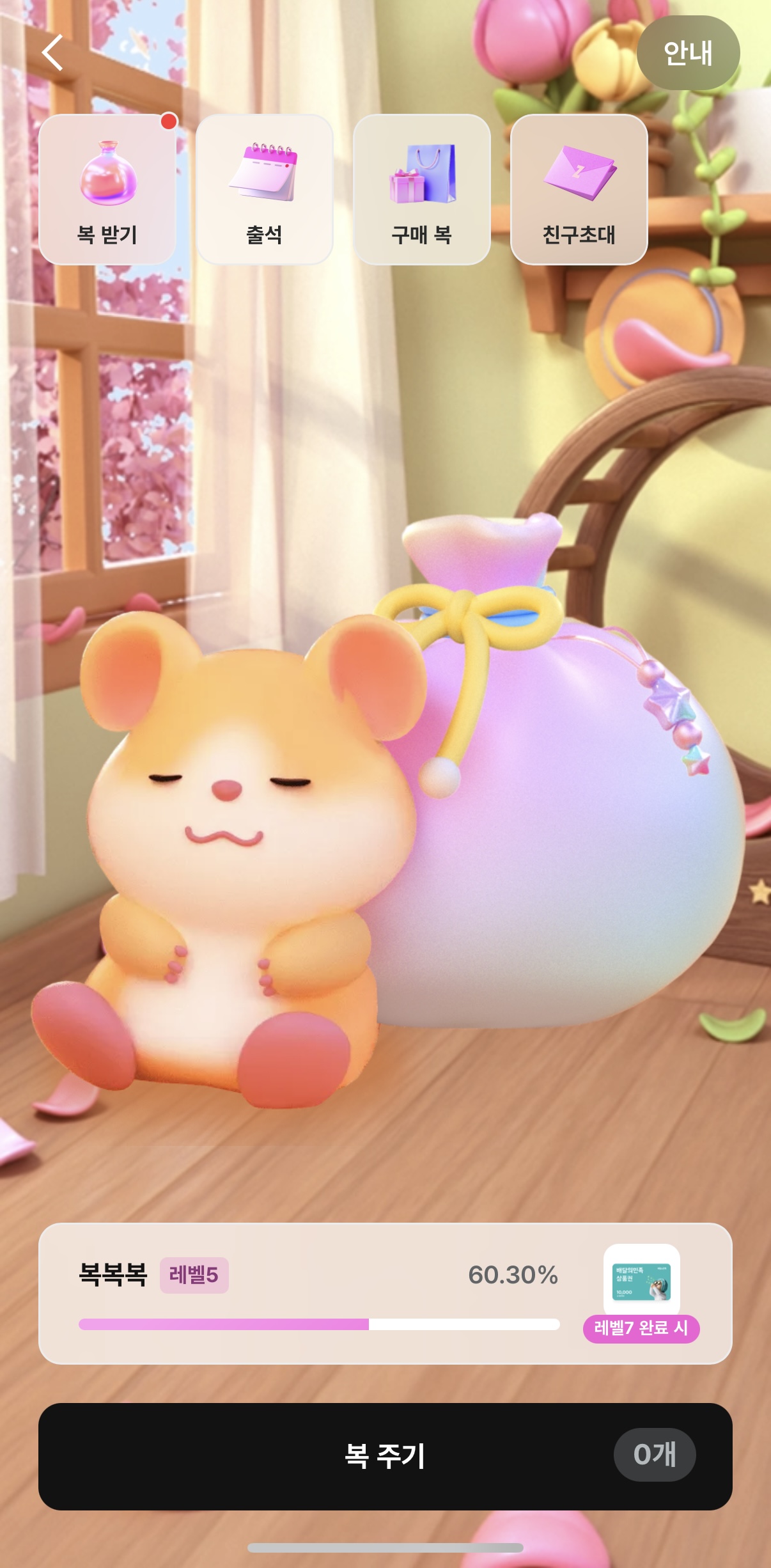 * 복덩이 키우기는 키우기 완료 시 리워드를 지급받는 양육 게임이다.
