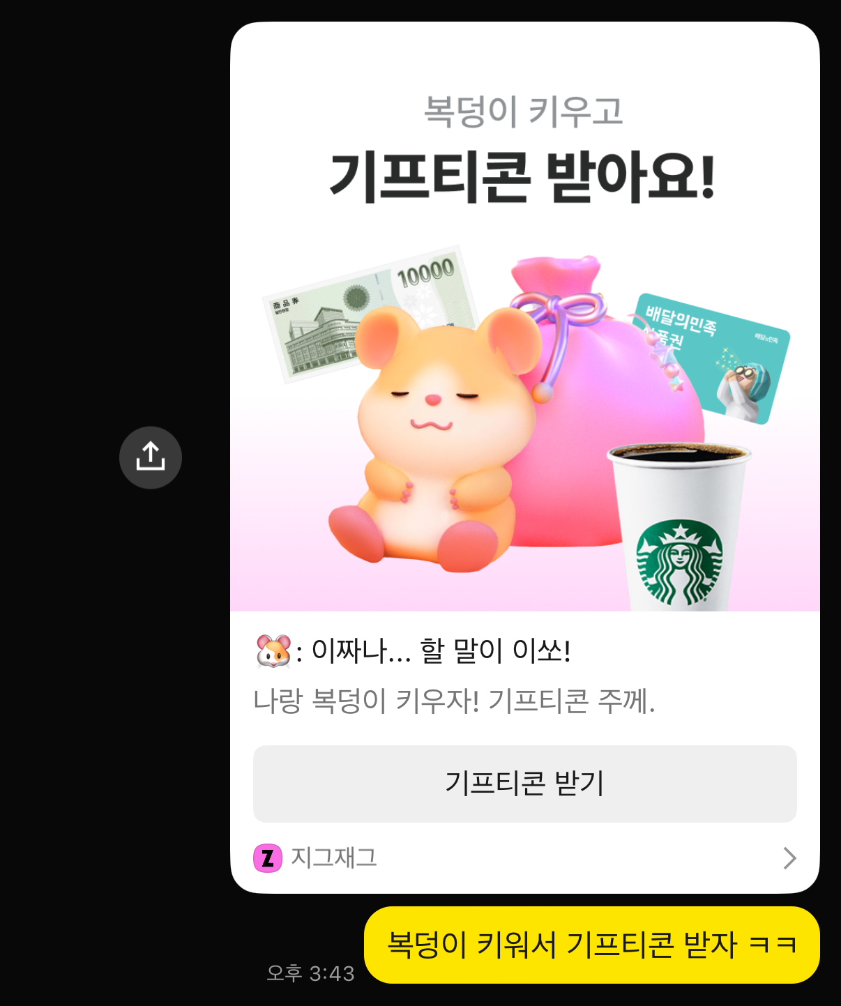 나랑 복덩이 키우자! 기프티콘 주께