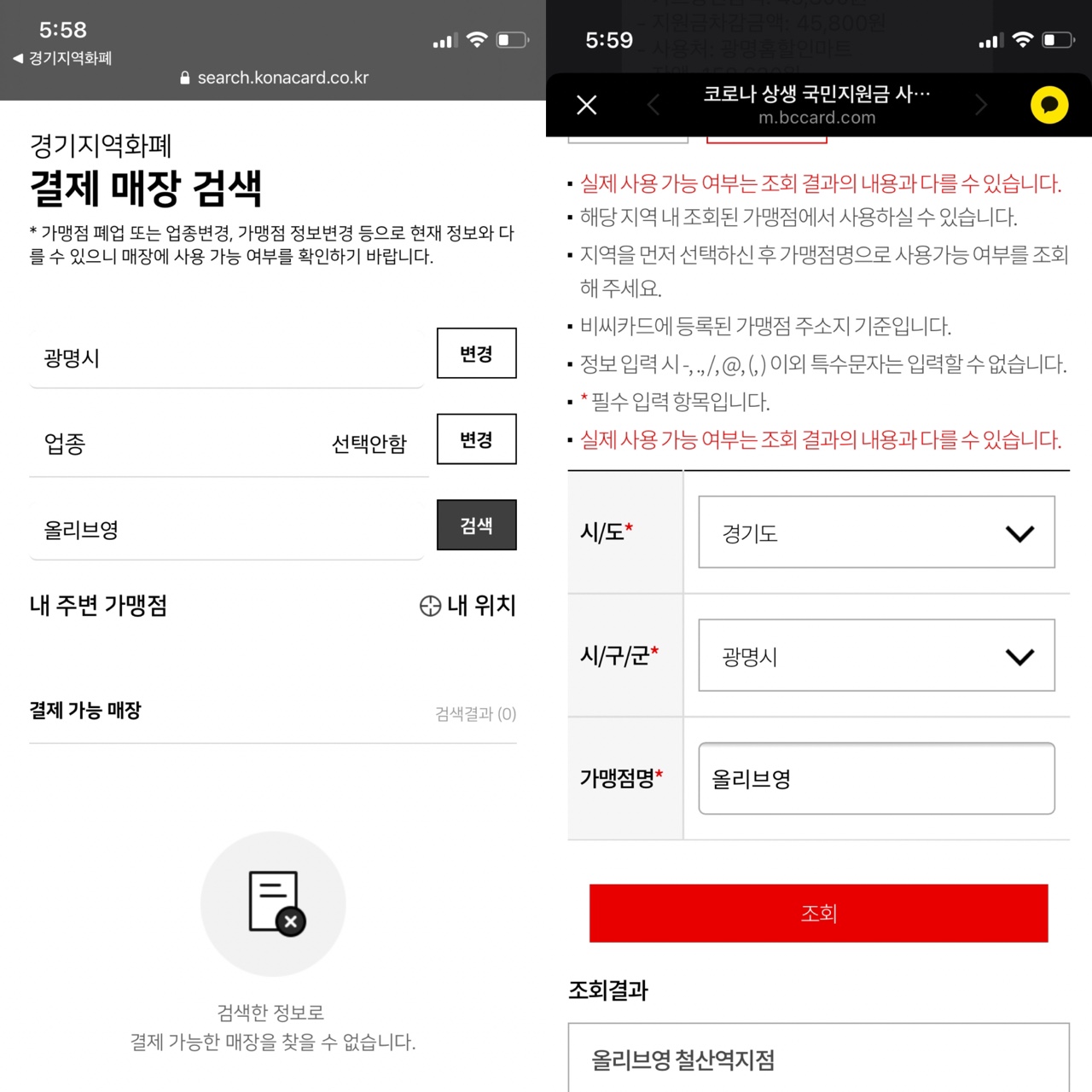 광명 안에 있는 지원금 사용처에서 사용한 경우