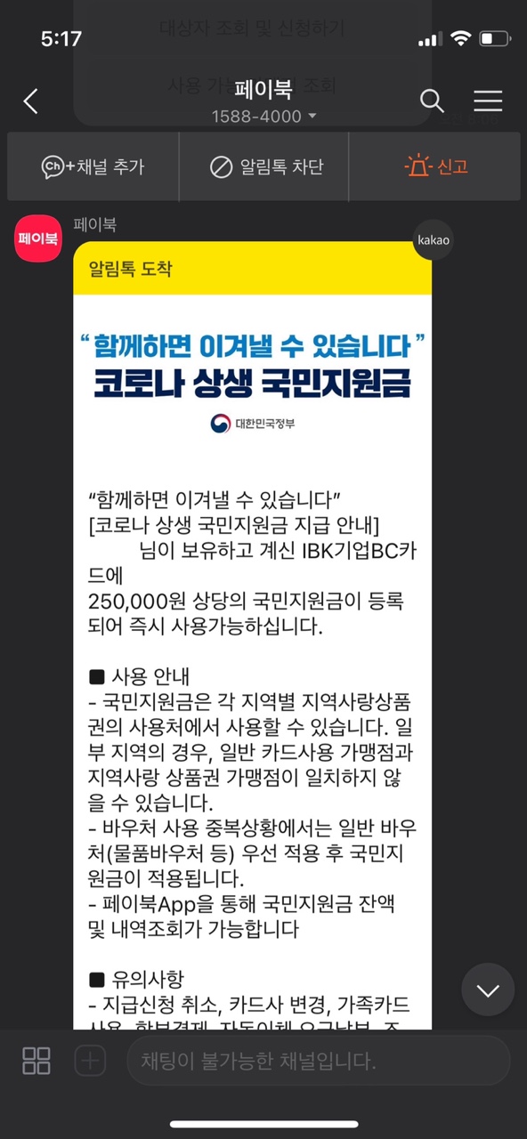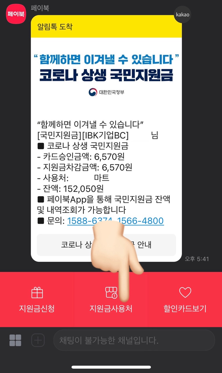 1. 카톡-페이북-지원금사용처