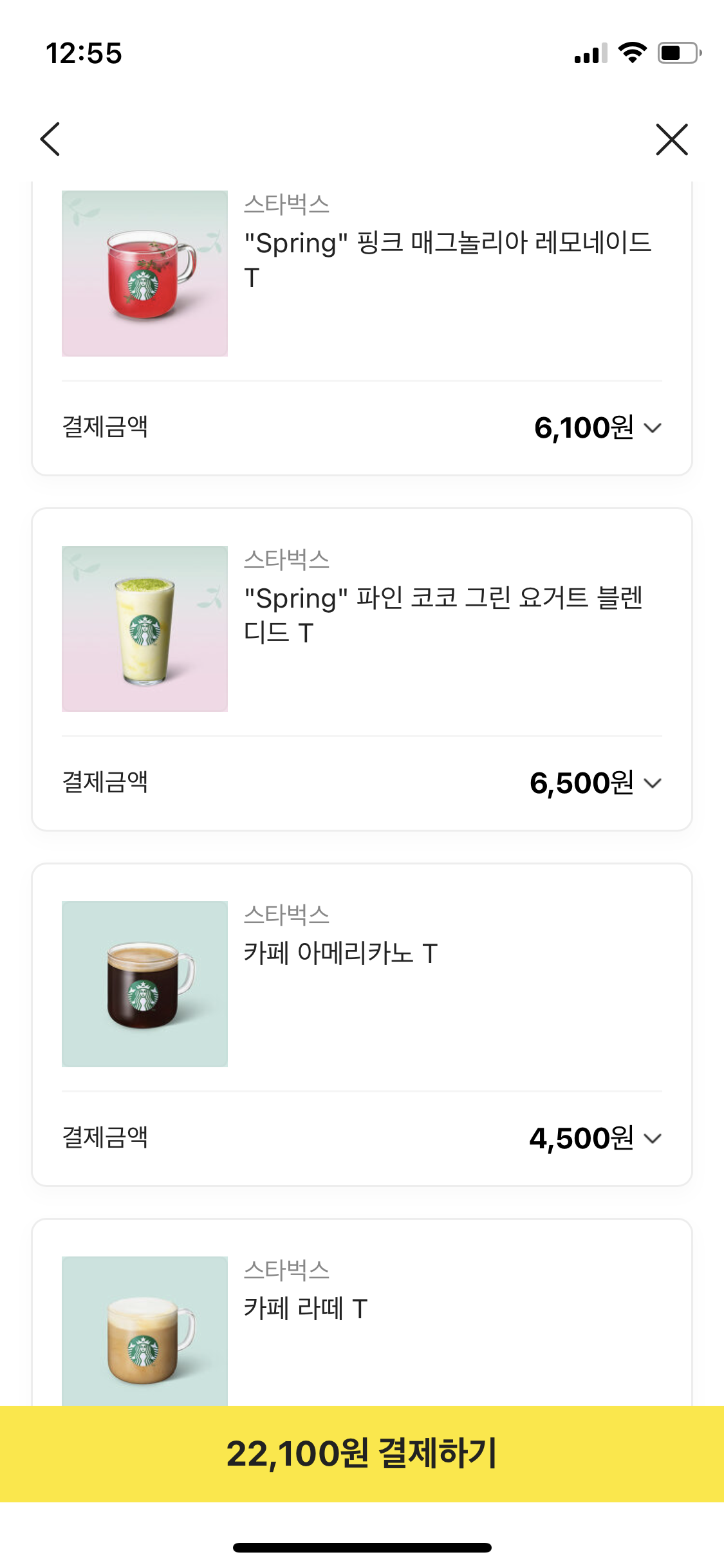 4. 카드와 메시지 작성 후 내가 고른 상품들(종류, 수량)이 잘 들어갔나 확인 후 결제한다.