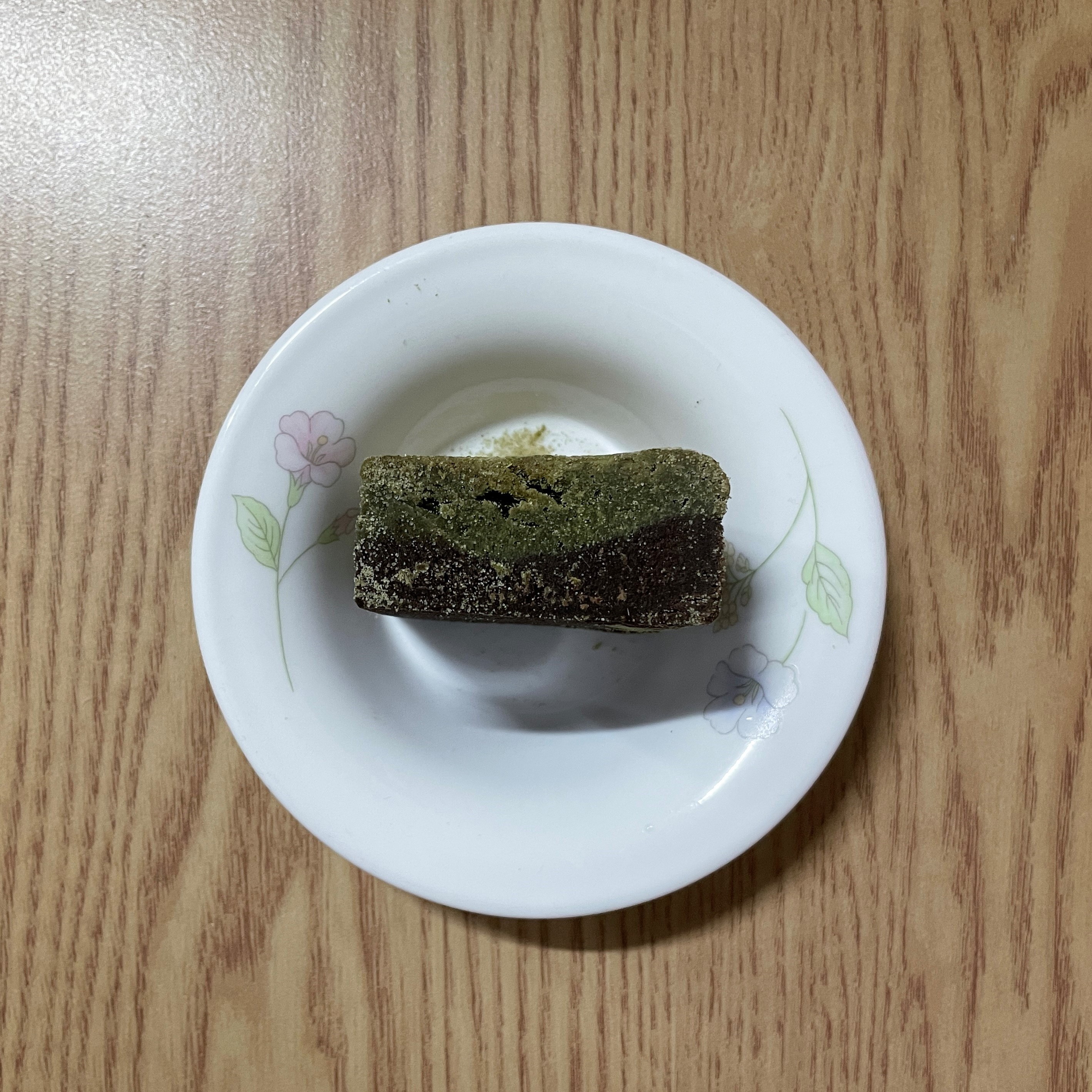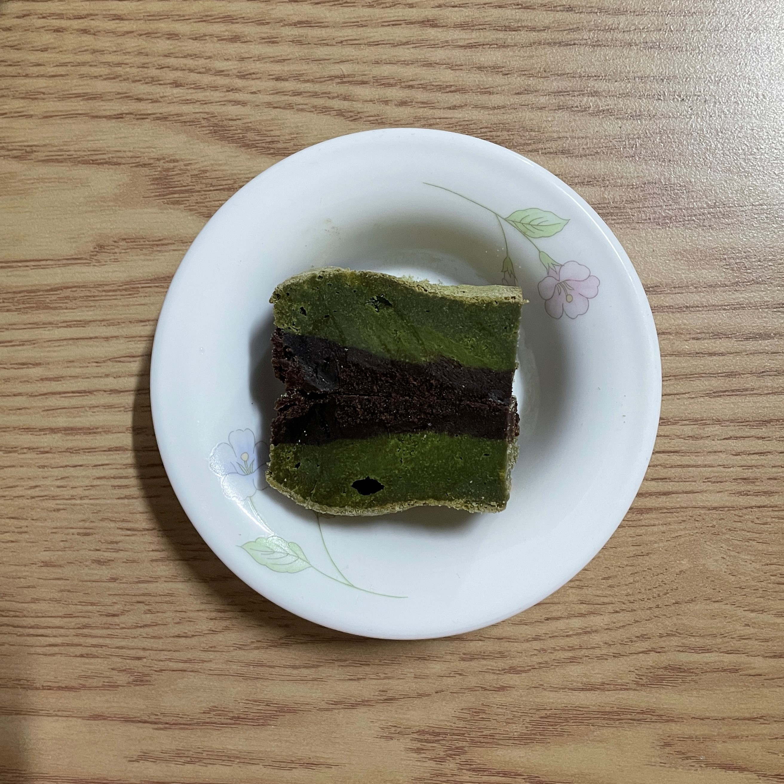녹차7 초코3 비율로 아주 적절한 단면이다. 이걸 보고 샀어야 하는데... 다른 하나는 반대 비율이어서 녹차만 파먹고 초코는 버렸다는... 물론 초코도 맛있지만 나는 녹차를 위한 녹차에 의한 녹차의 브라우니를 먹고싶어서...