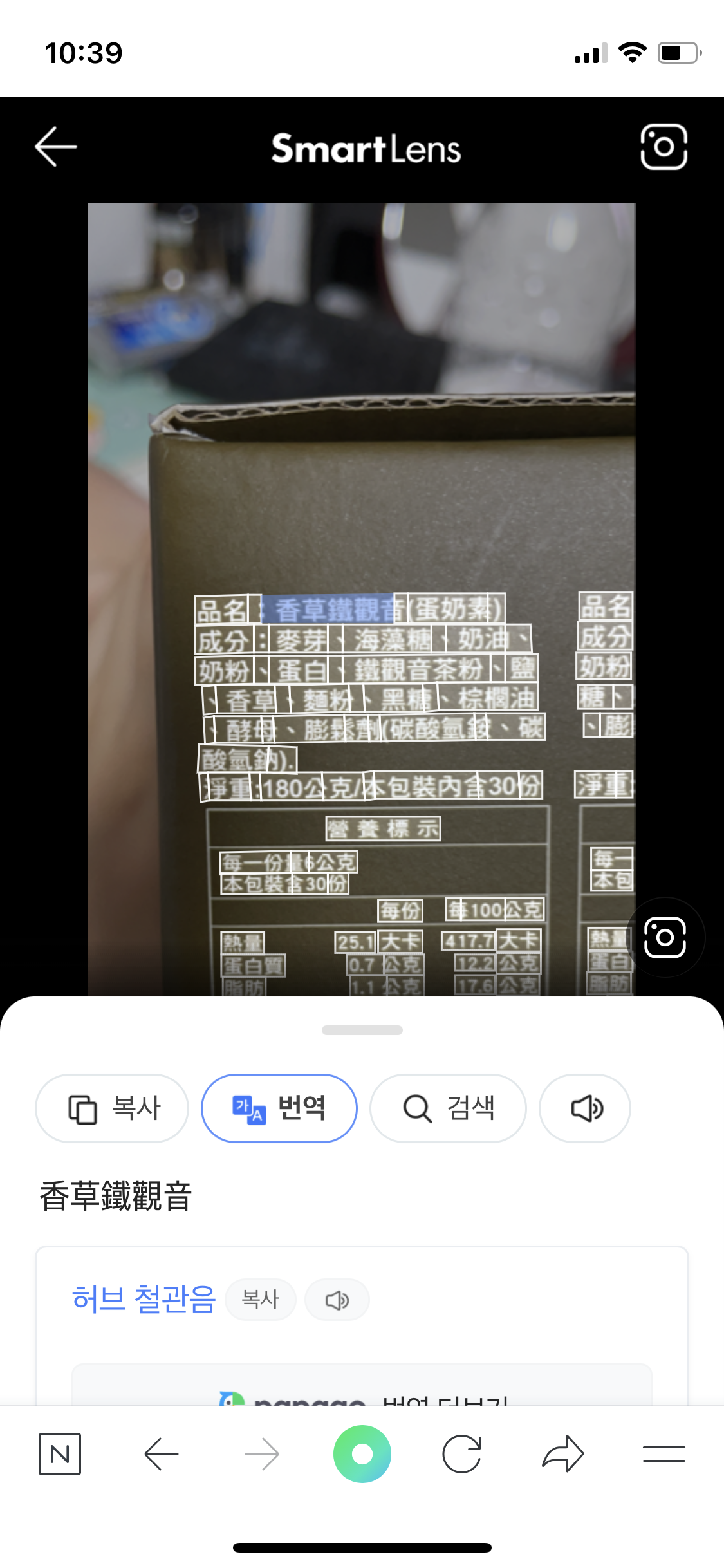 아는 게 초코랑 커피맛 밖에 없어서...ㅋ아무리 검색해 봐도 초코맛 커피맛 밖에 안나오네... 내 상자와 껍질색과는 다른 거 같은데... 내껀 카키색인데... 궁금해서 냅다 스마트렌즈 켜봄...