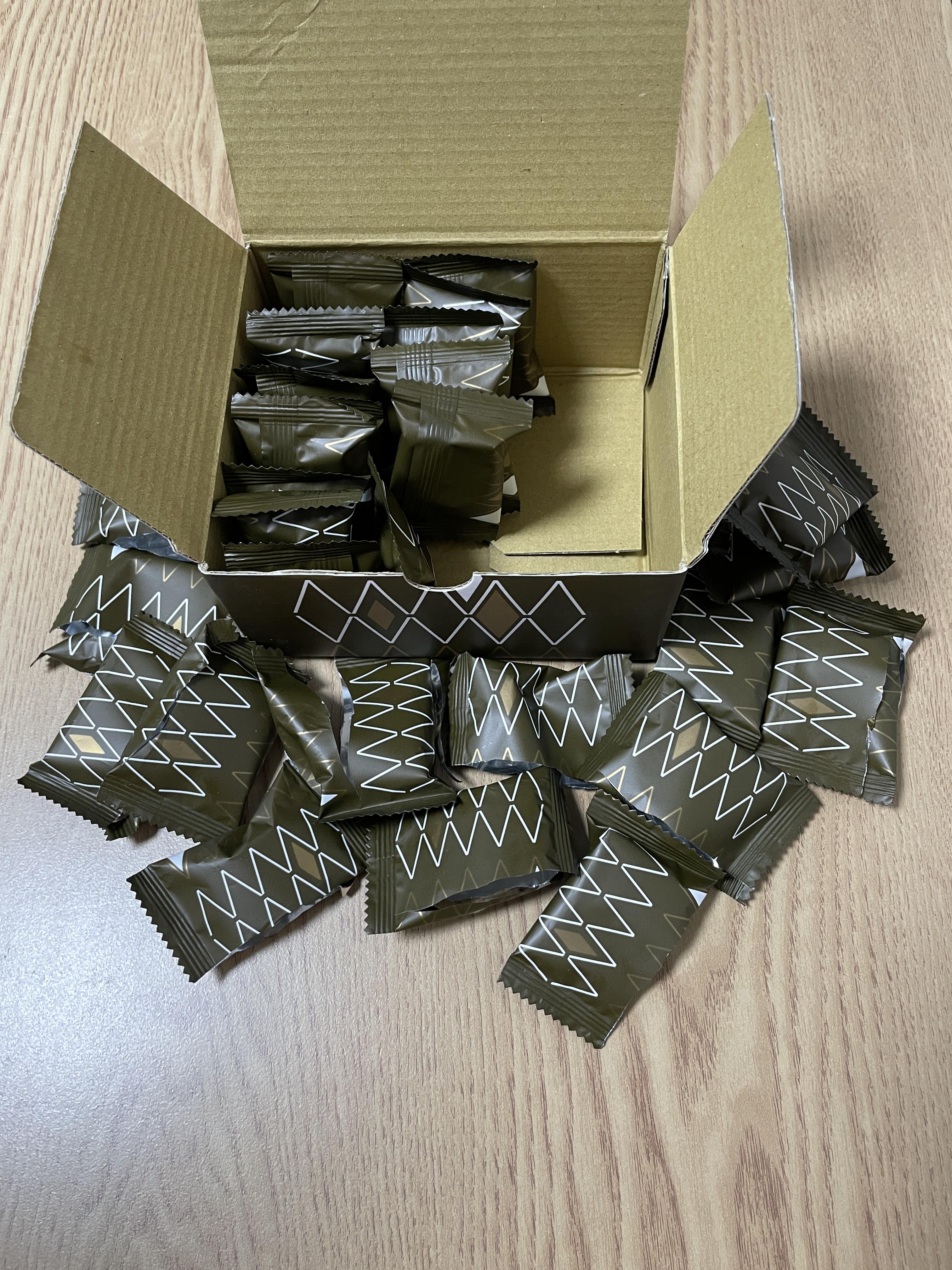 위아래에 있는 크래커가 참 꼬숩고 맛있다. 우리나라 참깨스틱과 비슷한 느낌의 맛이 난다. 아작 씹으면 크래커의 고소함 다음 느껴지는 누가의 부드러운 달달함 이어지는 우롱차향과 약간의 씁쓸함... 합이 완벽하다...