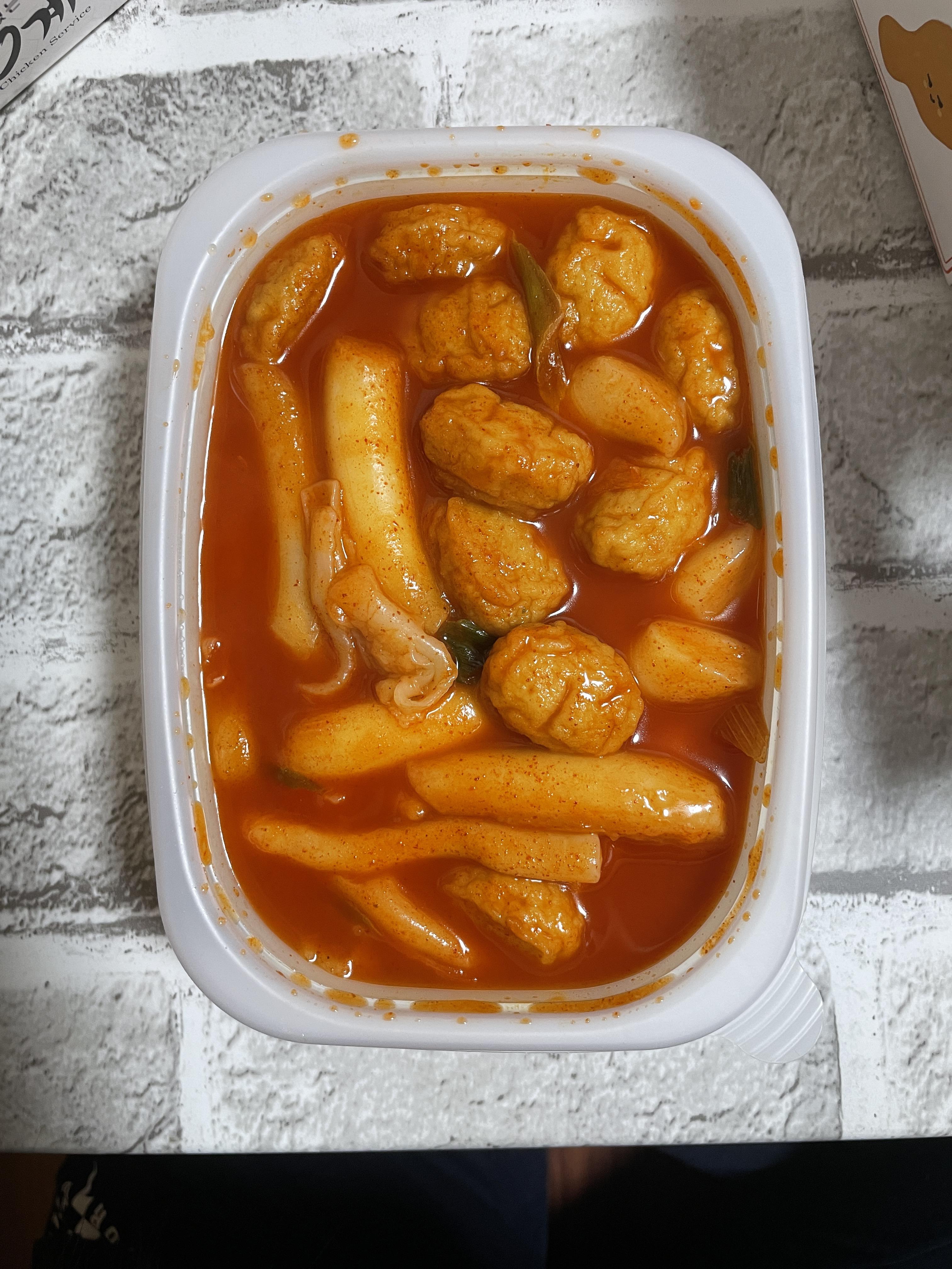 본죽 2등분 통에 가득 담겨온다. 동그란어묵, 일반떡볶이떡, 누들떡, 파많이가 들어 있다. 맛은 매콤달달한 느낌. 닮은 맛을 찾자면 마트 떡볶이 맛? 매콤달콤한... 막 계속 땡기는...ㅋ 진짜 양도 괜찮고 맛도 있다!